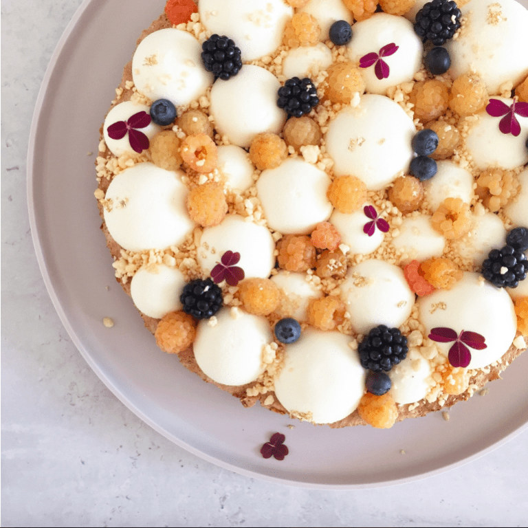 100 g gule hindbær (vælg dit yndlings bær – jeg havde gule hindbær i haven)
