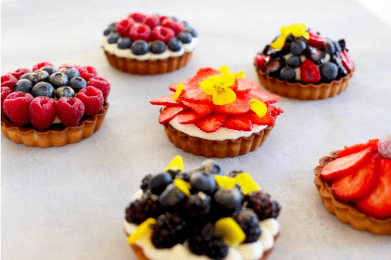 Fredag/Lørdag: Pisk vaniljecremen op og vend den med flødeskum. Kom vaniljecremen på tærterne og pynt dem af med bær mv.
