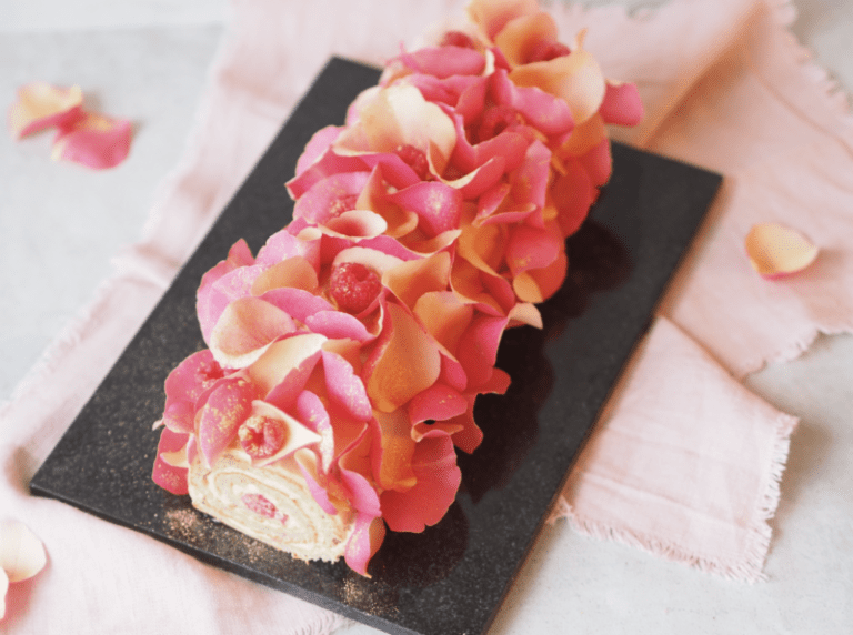 Skal du forkæle en, du har kær til valentinsdag? Så er det denne hindbærroulade med lakridscreme, du skal lave! Jeg har taget det klassiske udtryk sig det med blomster til next level. Og med den her kage, er jeg sikker på, at du vil tage din udkårne med storm. Hvorfor ikke overraske ham/hende med hjemmebag af den allerlækreste slags? Rouladen er spækket med kærlighed og sødme i form af luftige rouladebunde med et strejf af hindbær, syrlig lemoncurd og fræk lakridscreme. Udenpå er den pyntet med rosenblade og guldglimmer. Hvad mere kan man ønske sig?